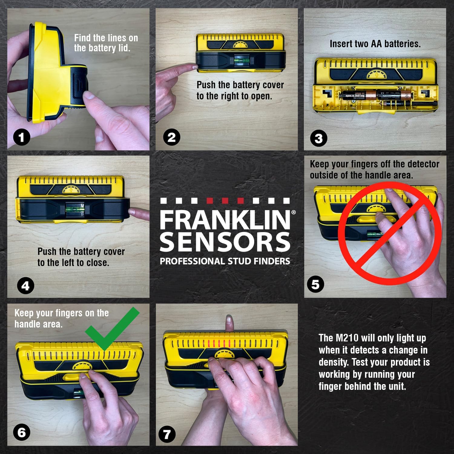 The Franklin Sensors ProSensor M210 Stud Finder delivers professional accuracy with 13 sensors working simultaneously to detect studs quickly and reliably. Featuring a full-width LED display, it instantly shows the location, width, and edges of studs, eliminating guesswork. With a deep scanning capacity of up to 1.7 inches and built-in live wire detection, it ensures both precision and safety on every project. Lightweight, durable, and requiring no calibration, the M210 is ideal for contractors, electricians, and DIY enthusiasts. Whether you’re mounting a TV, installing cabinets, or handling home renovation tasks, this stud finder makes the job faster and more accurate.