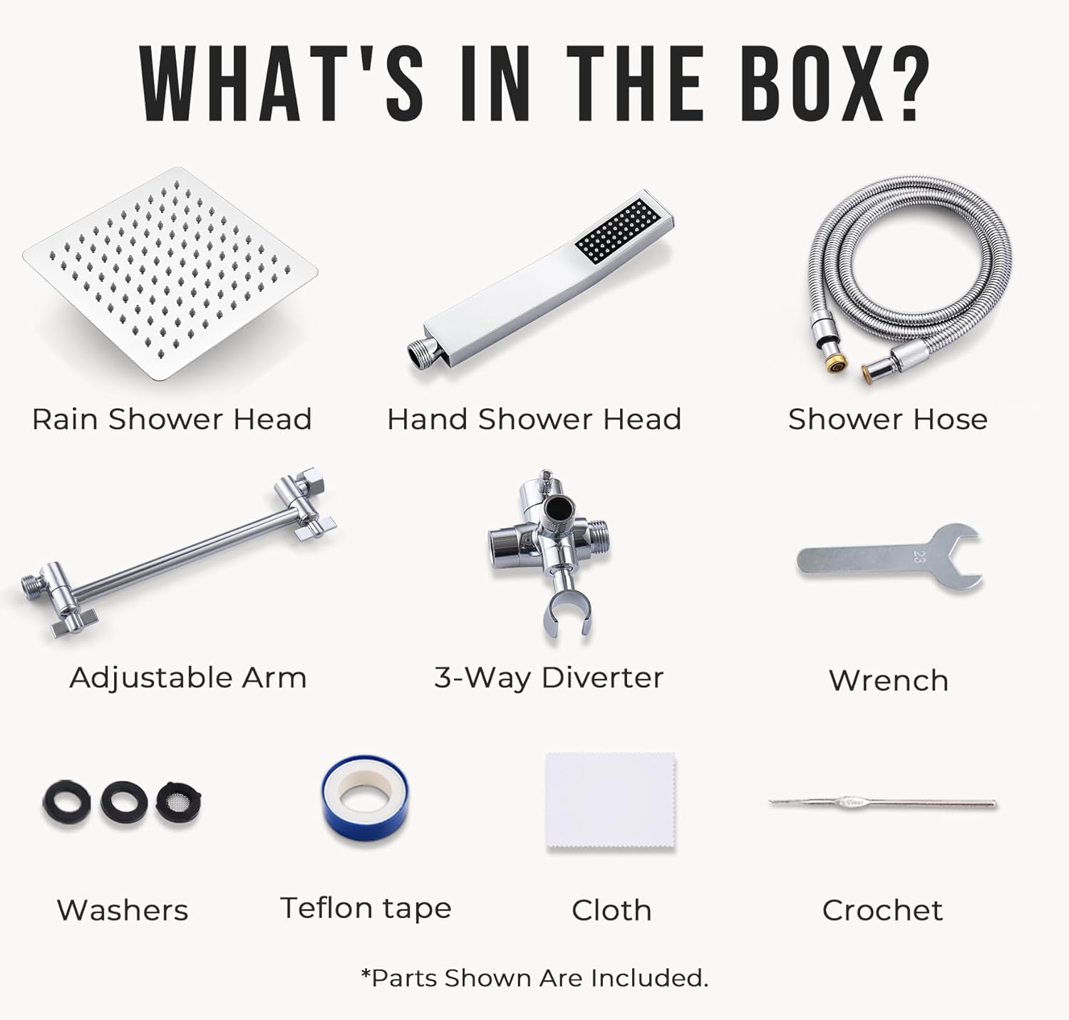 ALL-METAL DUAL SHOWER HEAD SYSTEM: Experience the best of both worlds with an expansive 8-Inch Square Rainfall Shower Head and a powerful, multi-mode Handheld Shower Wand. Both are crafted from high-quality metal for unmatched durability.