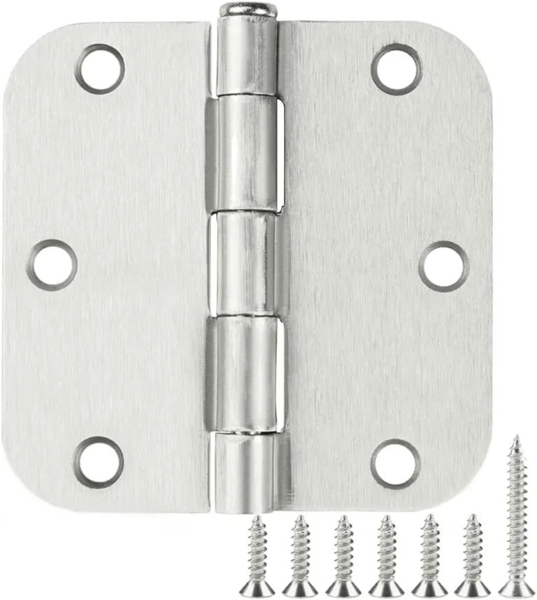 100 Pack Interior Door Hinges – Brushed Nickel 3.5″ x 3.5″ Rounded Corner Hinges with 600 Screws