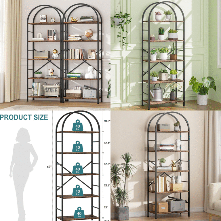 Shintenchi 5-Tier Industrial Bookshelf – Rustic Brown Tall Bookcase & Home Office Storage Organizer