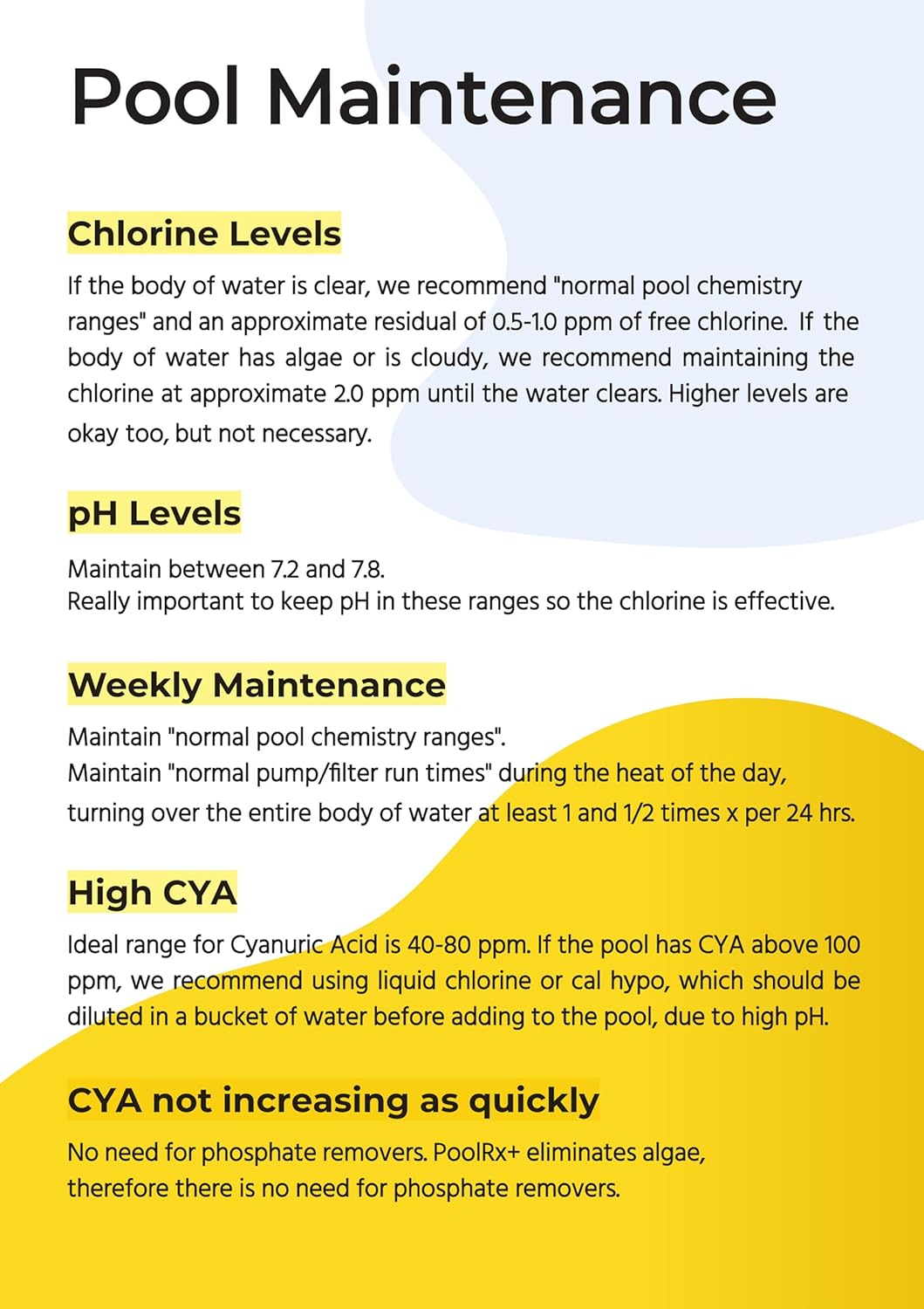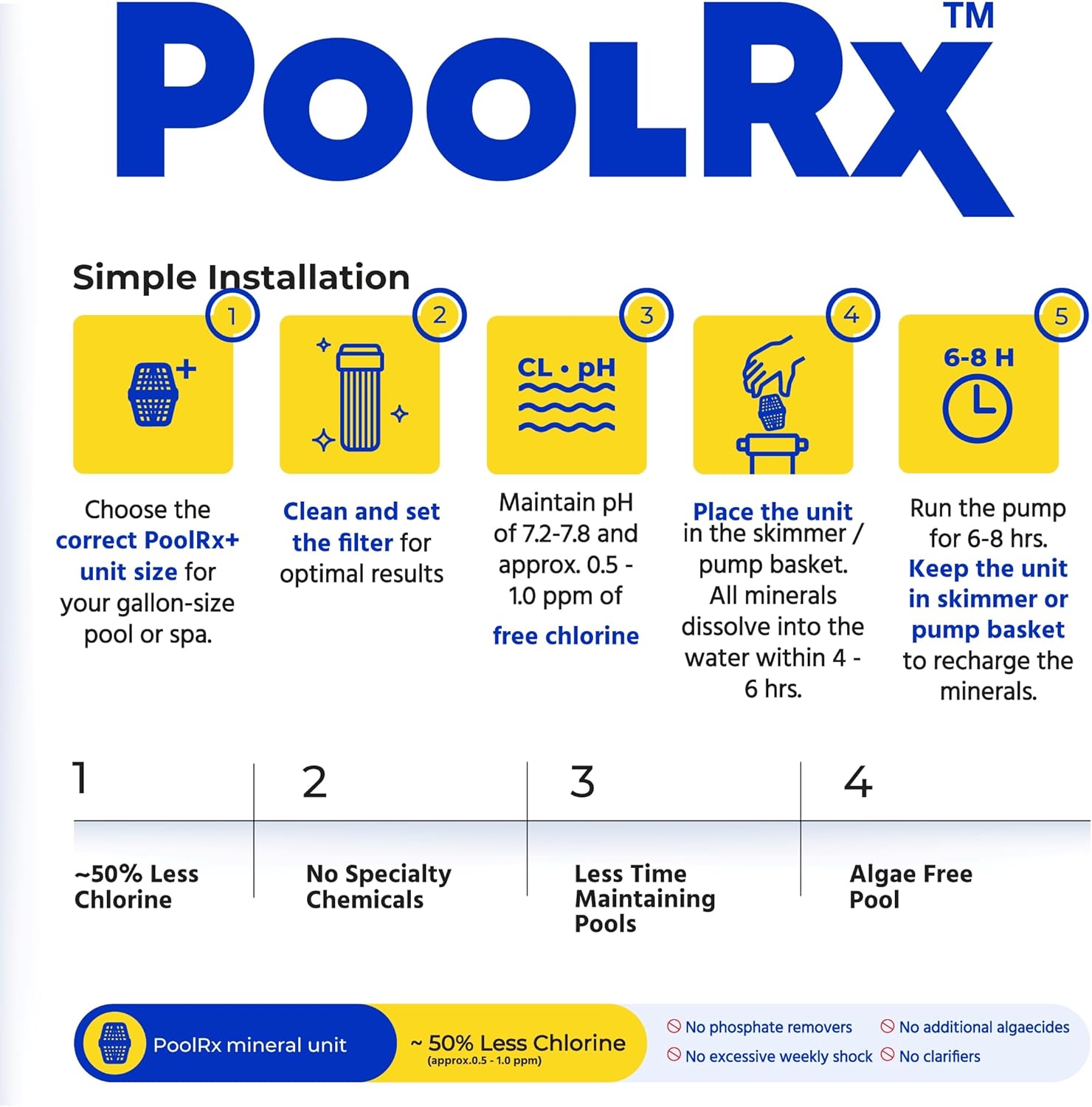 - 6-Month Long-Lasting Formula: Get season-long protection. One PoolRx Unit (101066) provides up to 6 months of continuous algaecide and clarifying action.