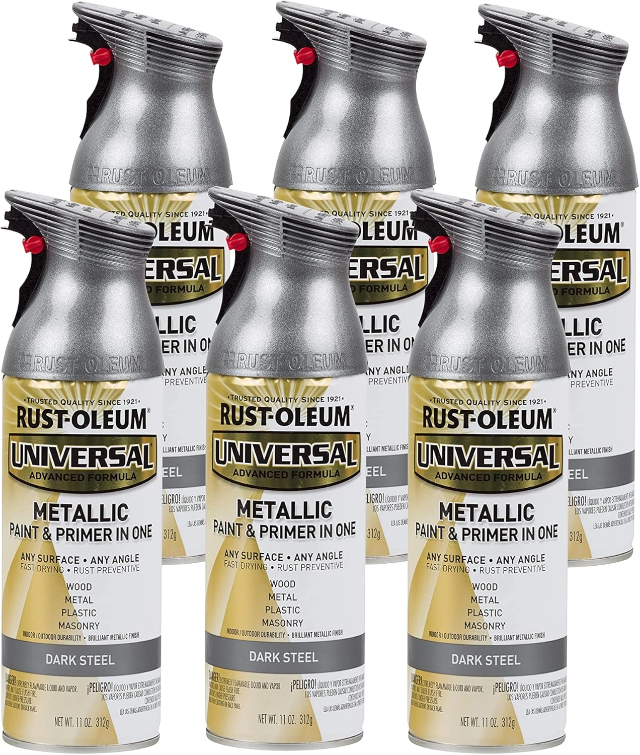 Whether you’re updating furniture, metal fixtures, architectural accents, or decorative DIY pieces, choosing the right spray paint can dramatically impact both the look and longevity of the finish. The Rust-Oleum Universal All Surface Metallic spray paint in the Dark Steel shade (model 262662-6PK) is designed to offer high-quality metallic coverage across multiple surfaces even those that aren’t traditionally easy to paint. According to the product listing, this 6-pack of 11 oz cans provides a cost-effective solution for multi-piece or multi-surface projects.