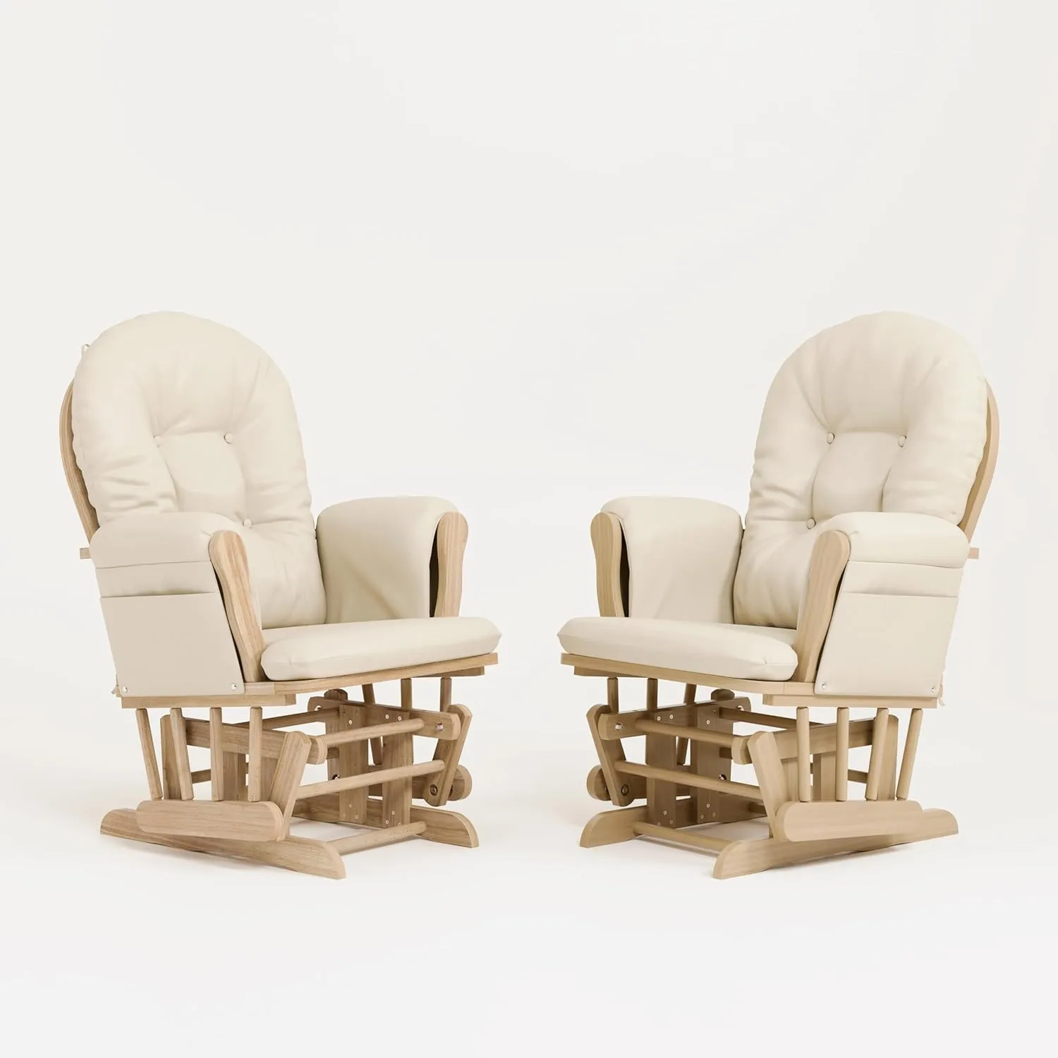 This glider is constructed with a solid wood frame and features a smooth gliding mechanism that supports a calm, gentle motion suitable for feeding, reading, or resting. The finish in a natural/beige palette is neutral and versatile, allowing it to fit with multiple décor styles—from contemporary to farmhouse-inspired settings. The matching ottoman provides a dedicated place to rest your feet, enhancing the overall comfort experience.