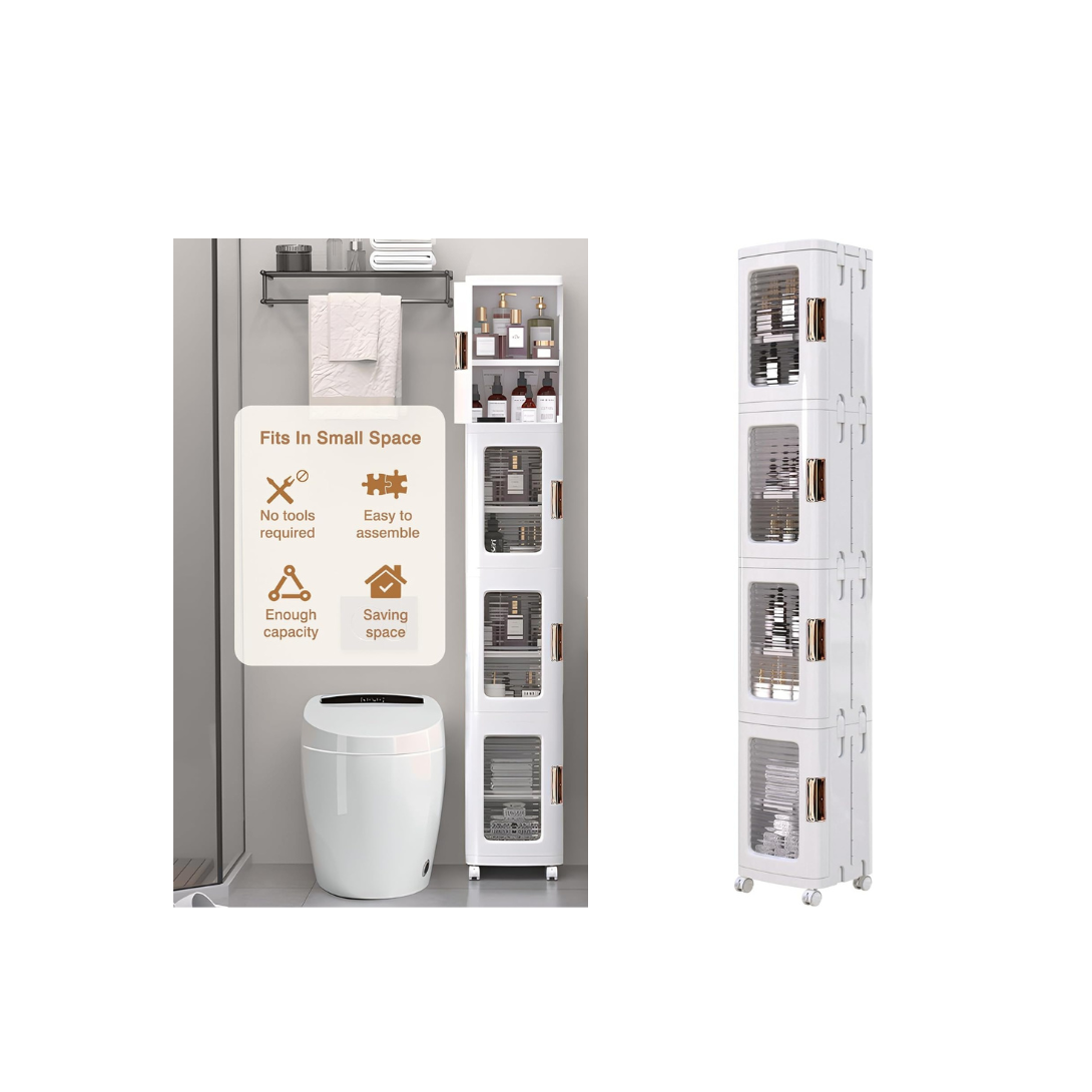 Maximize vertical storage in tight spaces with the VECELO 4-Tier Slim Storage Cabinet. This unit features durable polypropylene construction, adjustable shelving, and removable wheels, making it ideal for organizing bathrooms, kitchens, and laundry rooms while protecting contents from moisture and dust. Discover how this compact solution can revolutionize your organization today.
