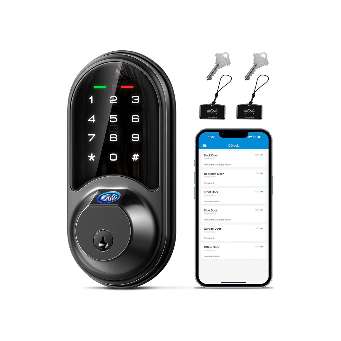- 7 Ways to Unlock: Experience maximum flexibility with multiple access methods: ultra-fast Biometric Fingerprint ID (0.3s recognition), Touchscreen Keypad (Code), Smartphone App Control (Bluetooth/Wi-Fi via Gateway), Web Portal, Key Fobs, eKey Sharing, and traditional Mechanical Key backup.